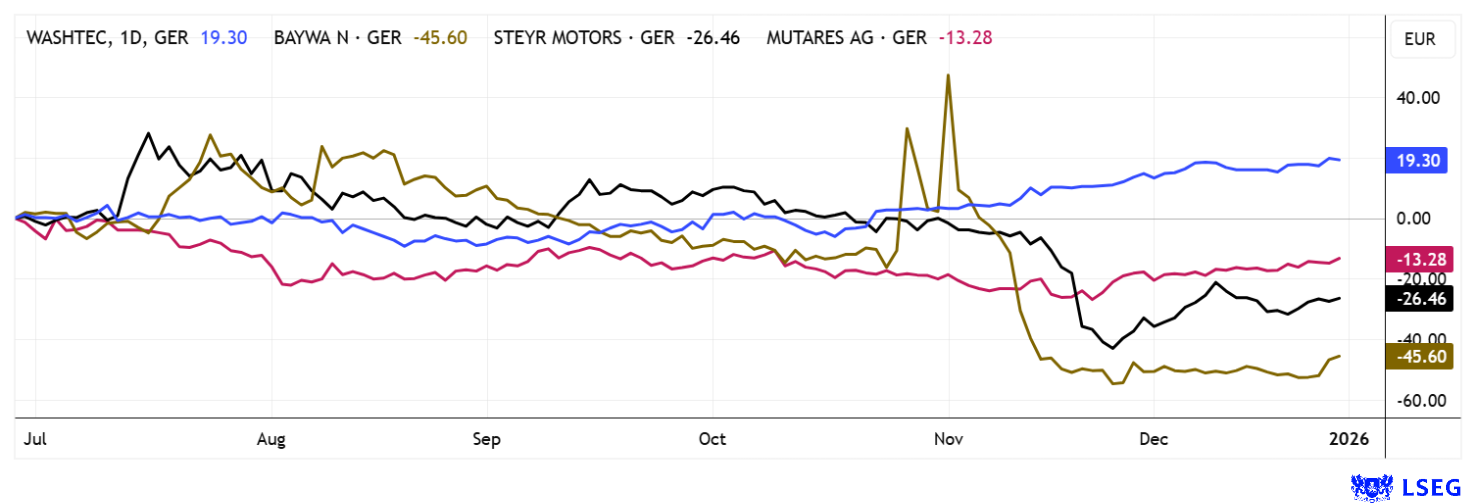 WASHTEC AG O.N. | DE0007507501 , BAYWA AG NA O.N. | DE0005194005 , MUTARES KGAA NA O.N. | DE000A2NB650 , STEYR MOTORS AG | AT0000A3FW25