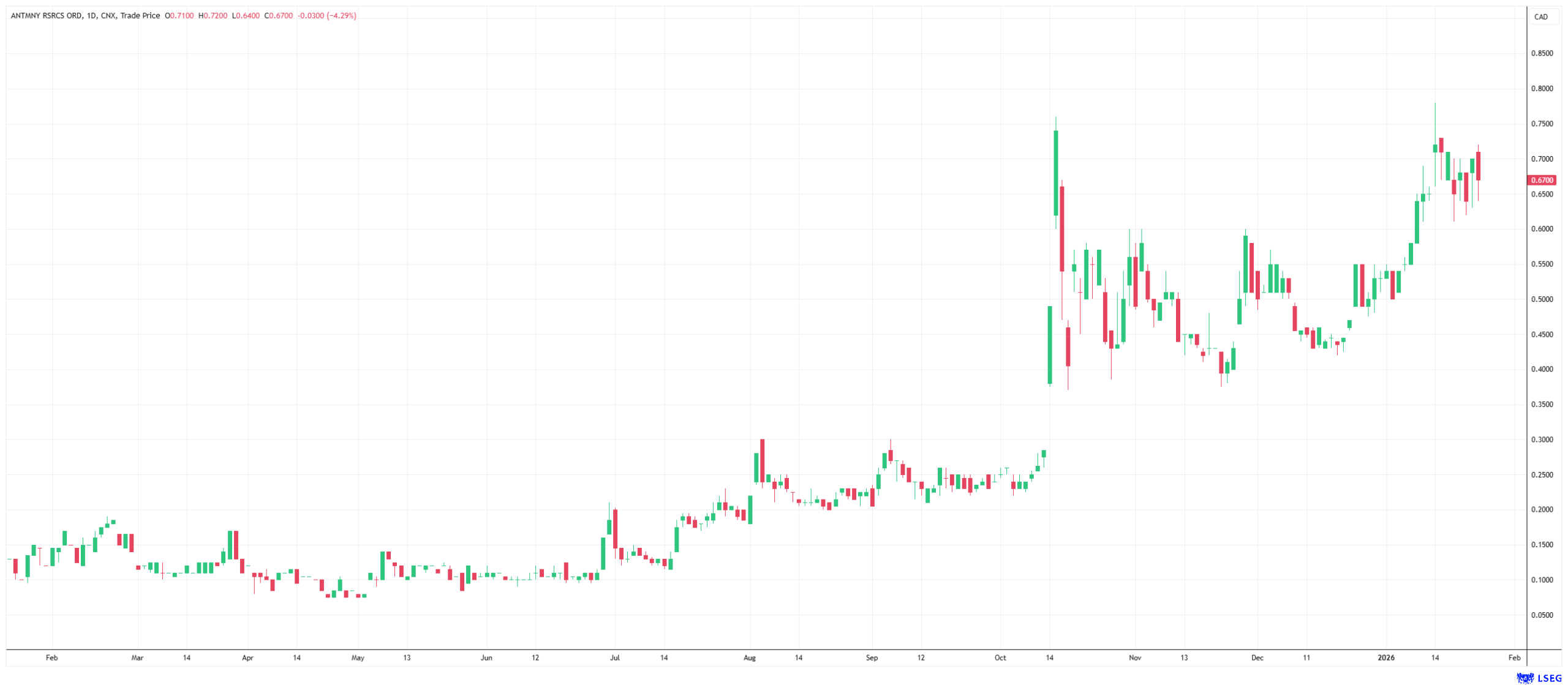 The critical raw material antimony is still little known, but is rapidly and inexorably gaining geopolitical importance. Its applications are systemically important, its substitutability is low, and its production is too heavily concentrated in China and other politically problematic countries. Western industries and governments are desperately seeking secure and reliable sources of supply. With Bald Hill, the Company owns the largest antimony deposit in North America, which is characterized by its high mineralization grades. With this strategic asset, Antimony Resources is gaining geopolitical importance, which will gradually be reflected in a structural revaluation of the Company. Antimony Resources is currently valued at a modest CAD 53 million. Further data from the drilling program is expected to have a positive impact on the share price.