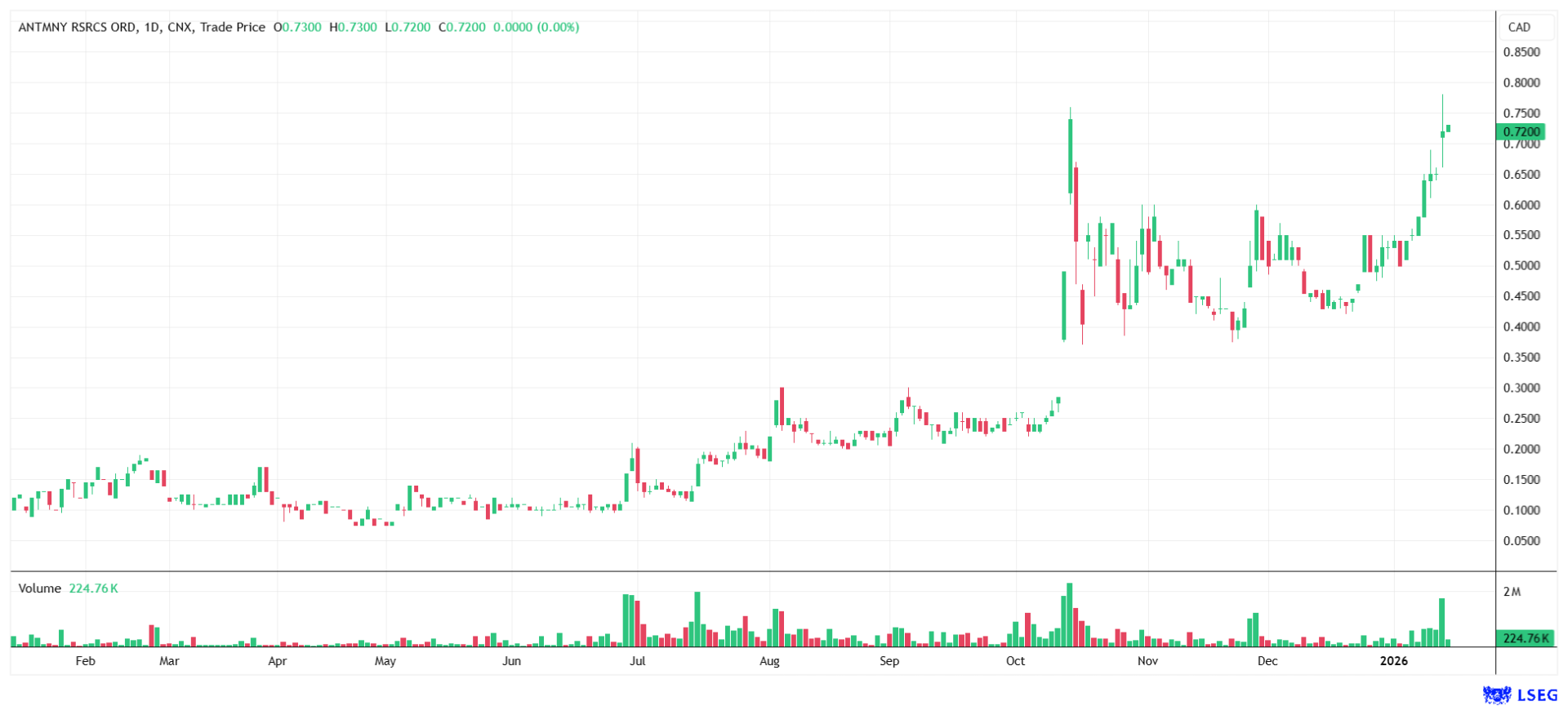 The stock is currently trading at CAD 0.72.