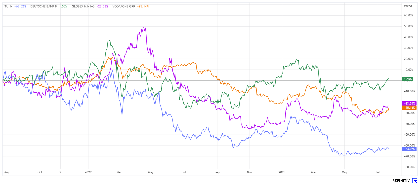 Investing in so-called laggards requires staying power. Usually, there is a fundamental reason why performance leaves much to be desired. Deutsche Bank has just undergone a huge transformation, and Vodafone can surprise in earnings. Globex is in the trend of neglected explorer stocks, and TUI must first prove that the last capital increase is finally bearing fruit.