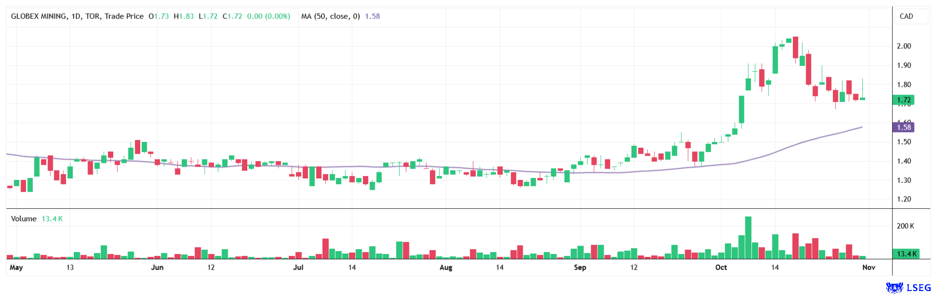 The fact that Globex generates regular income and always has financial leeway with its multitude of projects brings great advantages to investors. Unlike pure exploration companies, Globex Mining does not need to raise capital repeatedly. This reduces dilution risk for long-term investors and positions Globex as a speculative yet stable base investment for commodity enthusiasts. The market now sees it this way too – the share price has risen by 36% over 6 months.