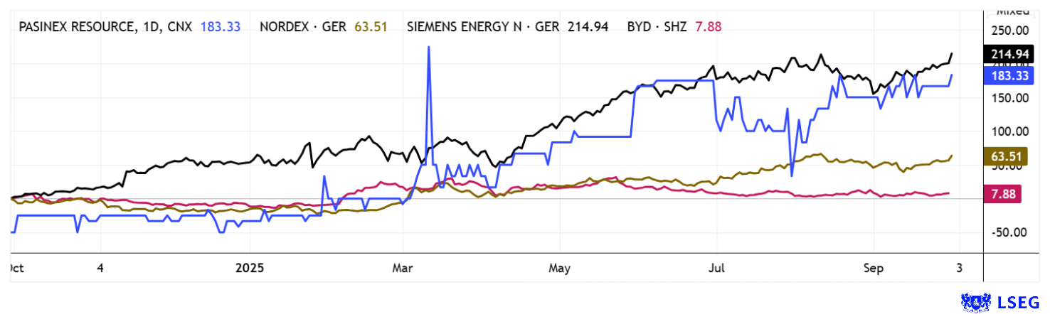 BYD CO. LTD H YC 1 | CNE100000296 , PASINEX RESOURCES LTD. | CA70260R1082 , SIEMENS ENERGY AG NA O.N. | DE000ENER6Y0