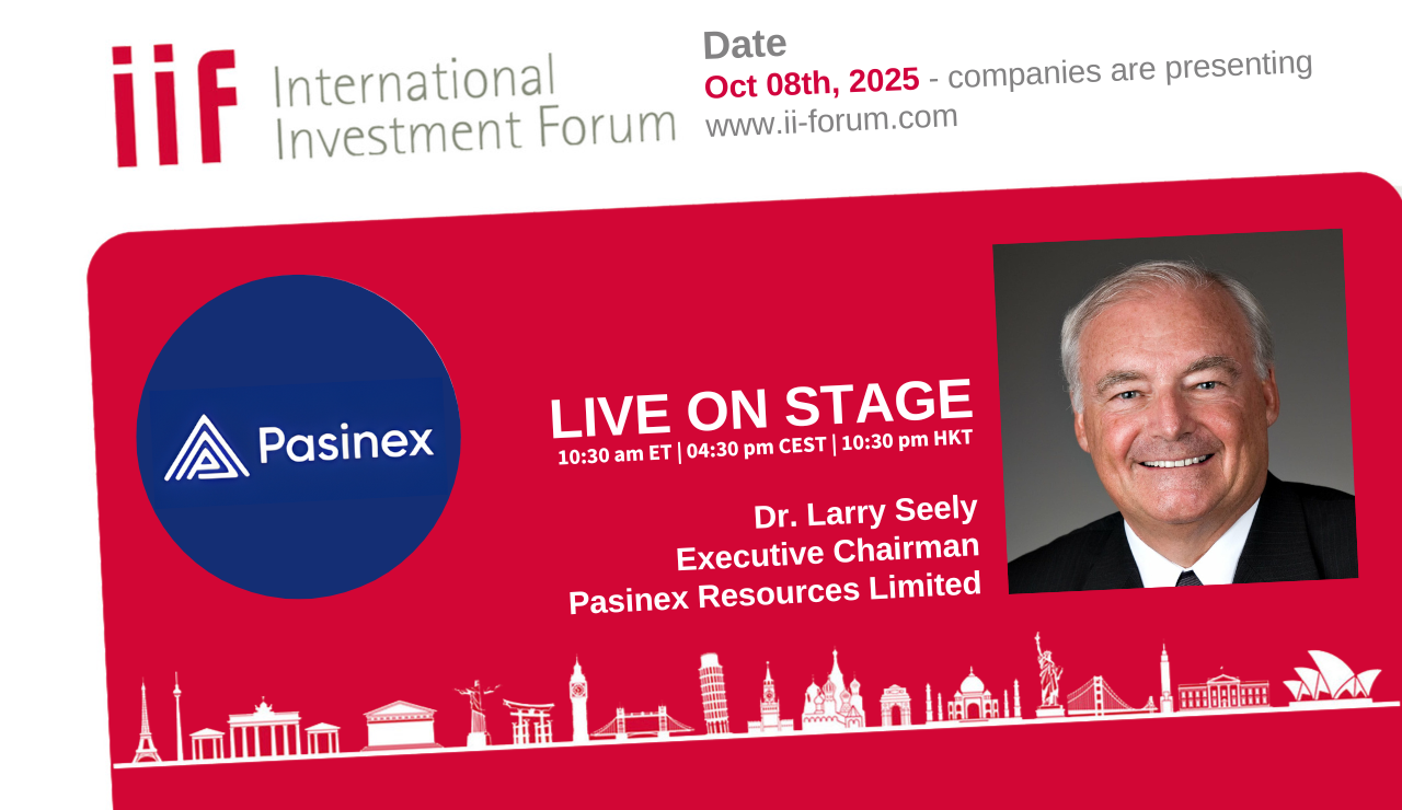 Pasinex Chairman Dr. Larry Seeley will be presenting at the 16th International Investment Forum (IIF) on October 8 at 4:30 pm CET. It should be exciting.