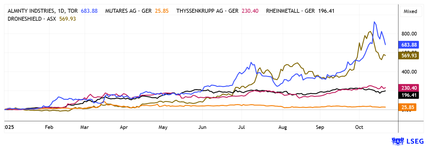 That happened fast. After a temporary surge in defense and metal stocks, investors are taking profits. This is understandable, as some stocks, such as Almonty Industries, had risen by over 1,000% in just 10 months. Now it is time to let the market settle and, with renewed confidence, return to the most sought-after sectors of 2025. Of course, it is recommended to diversify across many regions and sectors, such as AI, high-tech, or precious metals, to keep portfolio volatility low. Here are a few examples that have gained relevance in recent days.