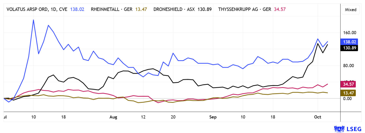 DRONESHIELD LTD | AU000000DRO2 , VOLATUS AEROSPACE INC | CA92865M1023 , THYSSENKRUPP AG O.N. | DE0007500001 , RHEINMETALL AG | DE0007030009