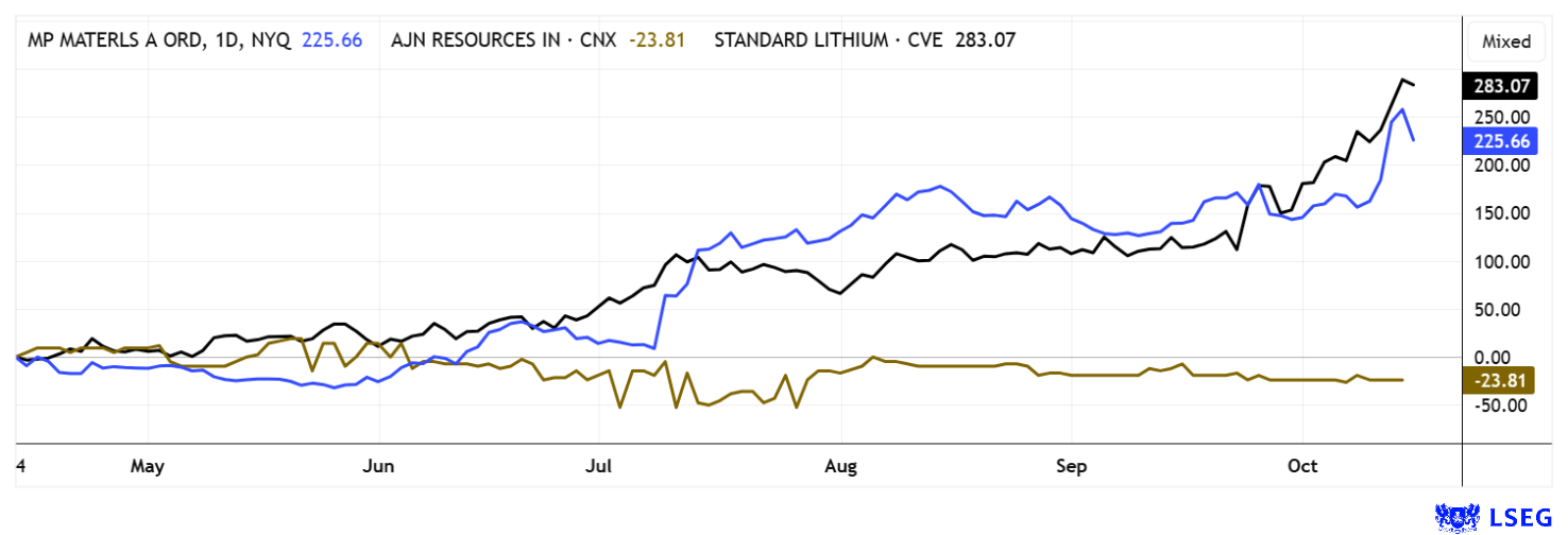 MP MATERIALS CORP | US5533681012 , AJN RESOURCES INC. O.N. | CA00149L1058 , STANDARD LITHIUM LTD | CA8536061010