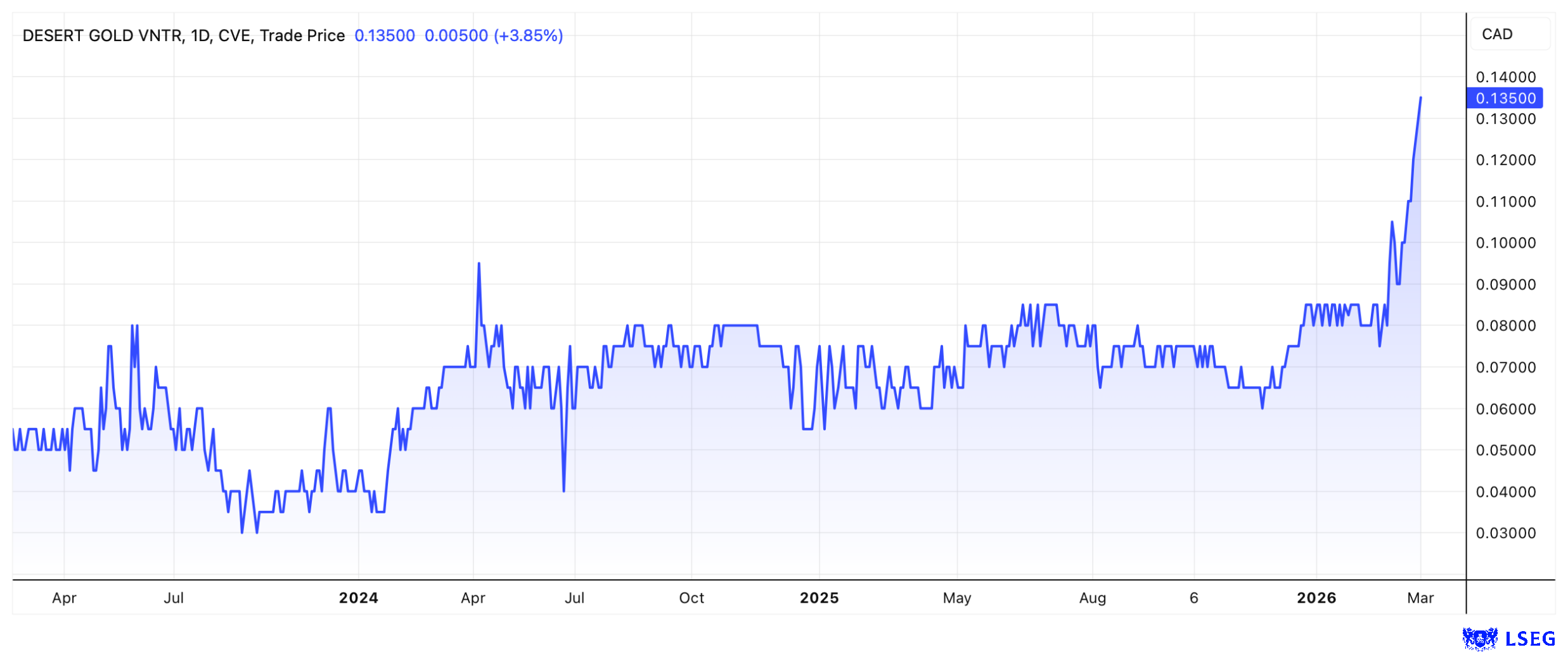Gold price in war mode! This gold stock is exploding! Is Desert Gold's 70% rally just the beginning?