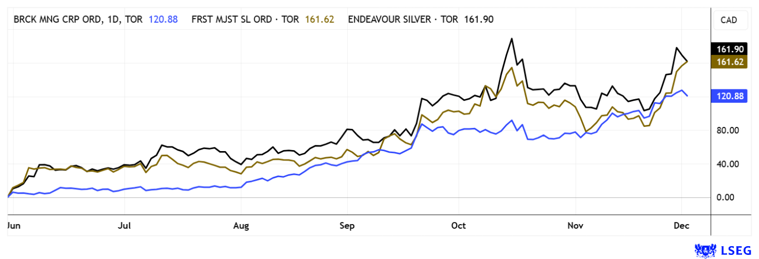 Industry competitor Endeavour Silver is undergoing a phase of strategic realignment in 2025, but with significantly more positive momentum than in 2024. In the third quarter, total costs (AISC) rose by 18% to USD 30.53 per ounce, but the parallel appreciation of the silver price kept profitability on track. With more liquidity, increasing cash flows, and new projects such as Terronera, which is expected to reach full capacity in mid-2025, Endeavour is systematically expanding its mining landscape. Together with the Guanaceví, Bolañitos, and Kolpa properties, this will create a diversified platform that could enable production volumes of up to 20 million ounces of silver equivalent by 2027. Analysts therefore expect rising EBITDA margins, growing net income, and stable long-term value appreciation. This makes Endeavour one of the fastest-growing players in the silver sector. **The revaluation should continue. CIBC Capital voted "Outperform" for the first time in December and set a 12-month price target of CAD 16. The average on the LSEG platform is CAD 14.25. There is still room for growth!