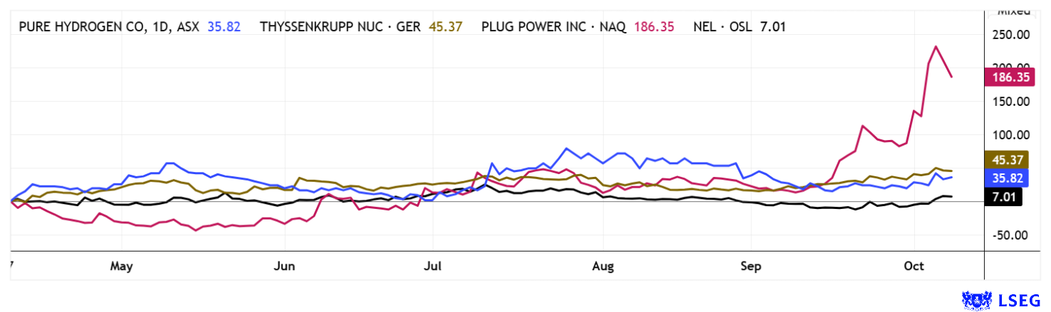 Established hydrogen companies Plug Power and Nel ASA are once again performing very dynamically after the price declines of recent years. Plug Power staged an impressive turnaround at around USD 0.70, achieving a 500% increase in September and reaching levels above USD 4.50. Nel ASA has also turned the corner. It is also worth taking another look at the operational side.