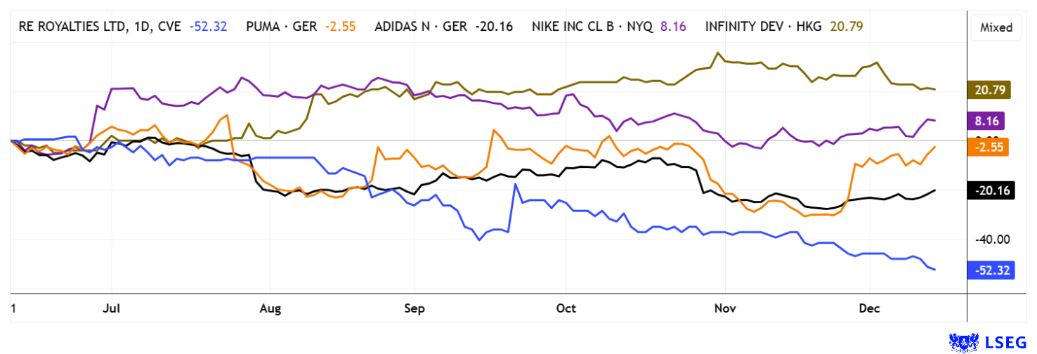 NIKE INC. B | US6541061031 , RE ROYALTIES LTD | CA75527Q1081 , ADIDAS AG NA O.N. | DE000A1EWWW0 , PUMA SE | DE0006969603 , INFINITY DEVELOP. HD-_01 | KYG4772A1085