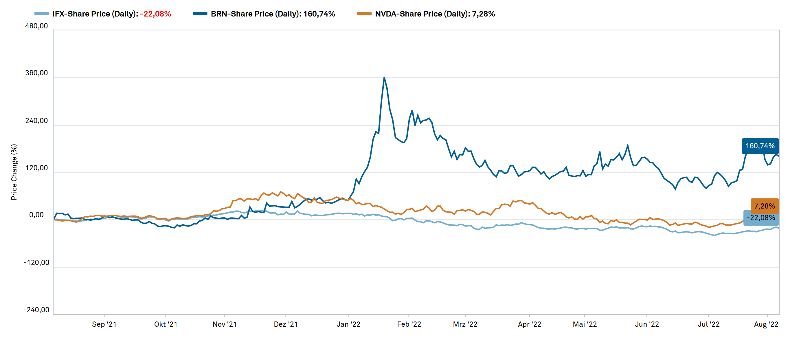 As you can see on the chart, all chip manufacturers had to struggle with falling prices. On an annual basis, BrainChip has fared best. There is still a lot of potential there, as the Company is only at the beginning. Second place goes to Nvidia, which is the measure of all things in the graphics card sector. Infineon is the loser with a performance of -22%. However, there may be some catch-up demand in terms of performance here.