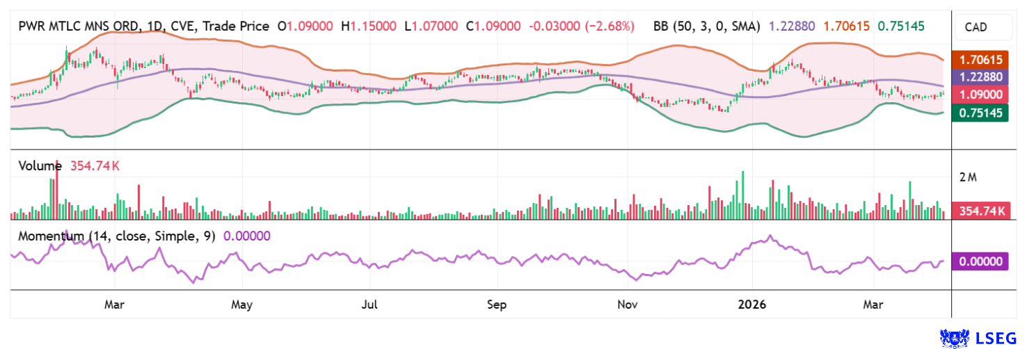 With a current market capitalization of approximately CAD 250 million, Power Metallic already ranks among advanced exploration companies, as the key factor is its already significant metal inventory resulting from continuous geological drilling successes. Analysts see a significant discrepancy between the company's valuation and its potential due to the high quality of the projects and therefore expect a revaluation as the resource estimate and the planned feasibility study progress.
