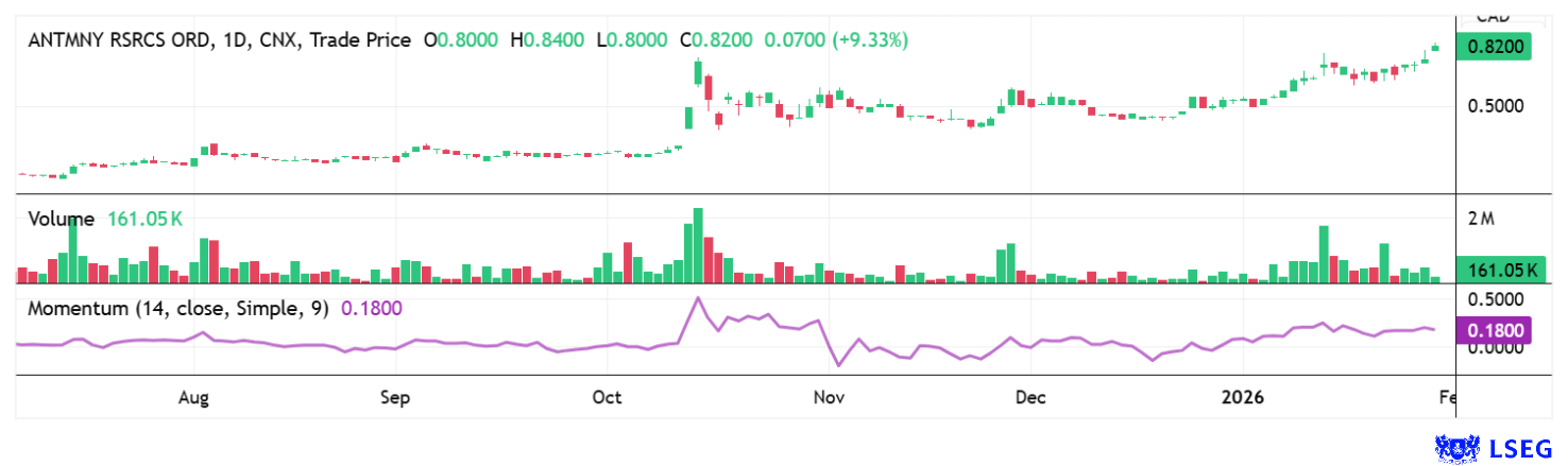 For years, antimony was a marginal commodity, mostly mined as a metal by-product and strategically underestimated. This phase now seems to be over. Today, antimony is considered a bottleneck metal for modern defense systems, flame retardant applications, and certain high-performance batteries, without which entire industries would be unable to function. This change is being driven not only by demand, but also by geopolitical supply risks: China controls around 70% of global production and has repeatedly imposed export controls, causing wholesale prices to rise from around USD 15,000/t to over USD 60,000/t at times. In this environment, Antimony Resources aims to develop the first North American, politically stable source of this critical raw material. Somehow, memories of the early Almonty days come to mind. In case anyone asks, this story began in the fall of 2024 and has grown from roughly CAD 60 million to around CAD 3.5 billion today.