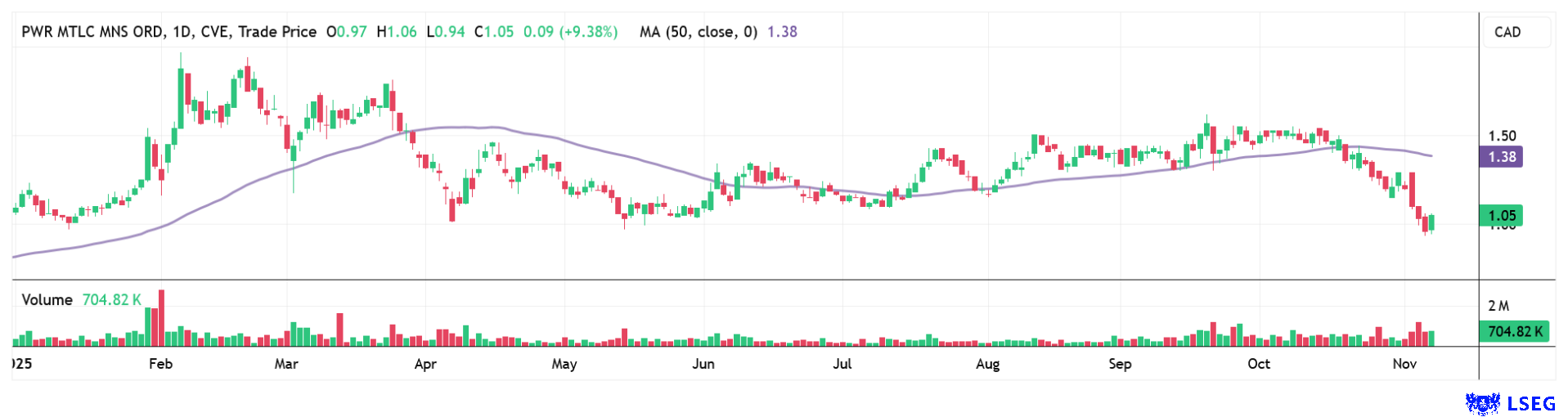 Power Metallic Mines' NISK deposit could also be a game changer for a large corporation – the numerous metals, from nickel to copper, cobalt and precious metals, cover a wide range of applications. Added to this is the location in stable Canada and the ESG orientation of the project. In the coming months, the Company plans to carry out drilling on a large scale – a total program of over 100,000 m is underway. If these drillings reveal grades similar to those in the Lion Zone, where Power Metallic was able to drill grades of 7% copper equivalent over a distance of 32 m, the market is likely to see the next mega deposit in the NISK project. Last month, Power Metallic Mines' share price fell by around 30%. The Company is now valued at around EUR 150 million. Given the promising outlook and the global appetite for large commodity projects with attractive ESG profiles, investors should keep an eye on Power Metallic Mines and its NISK project. The ongoing drill program could provide valuable insights into the future of the polymetallic project in the coming months.**