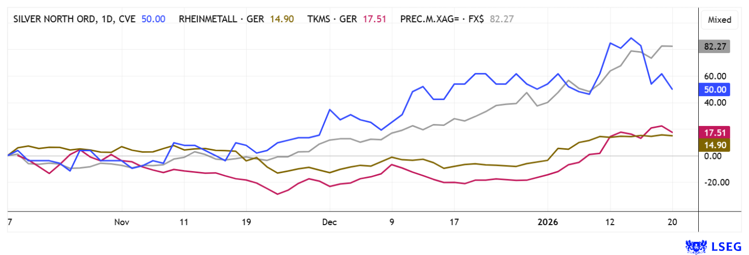 SILVER NORTH RESOURCES LTD | CA8280611010 , RHEINMETALL AG | DE0007030009 , TKMS AG & CO KGAA | DE000TKMS001