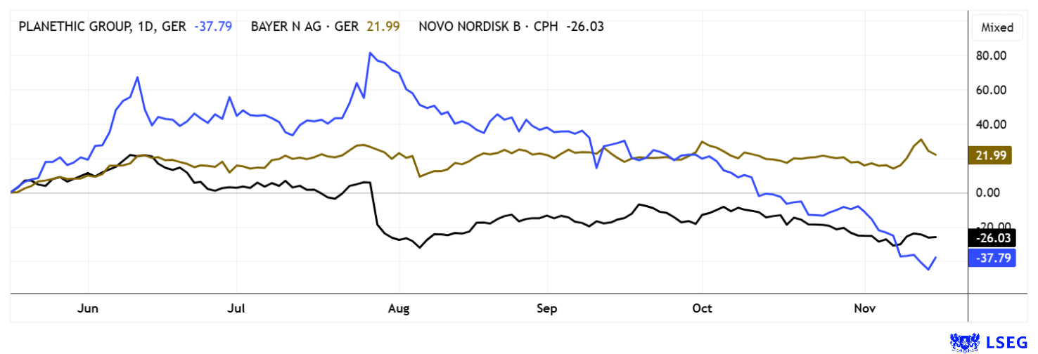 BAYER AG NA O.N. | DE000BAY0017 , PLANETHIC GROUP AG | DE000A3E5ED2 , NOVO NORDISK A/S | DK0062498333