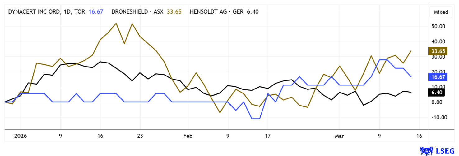 DRONESHIELD LTD | AU000000DRO2 , DYNACERT INC | CA26780A1084 | TSX: DYA , OTCQB: DYFSF , HENSOLDT AG INH O.N. | DE000HAG0005