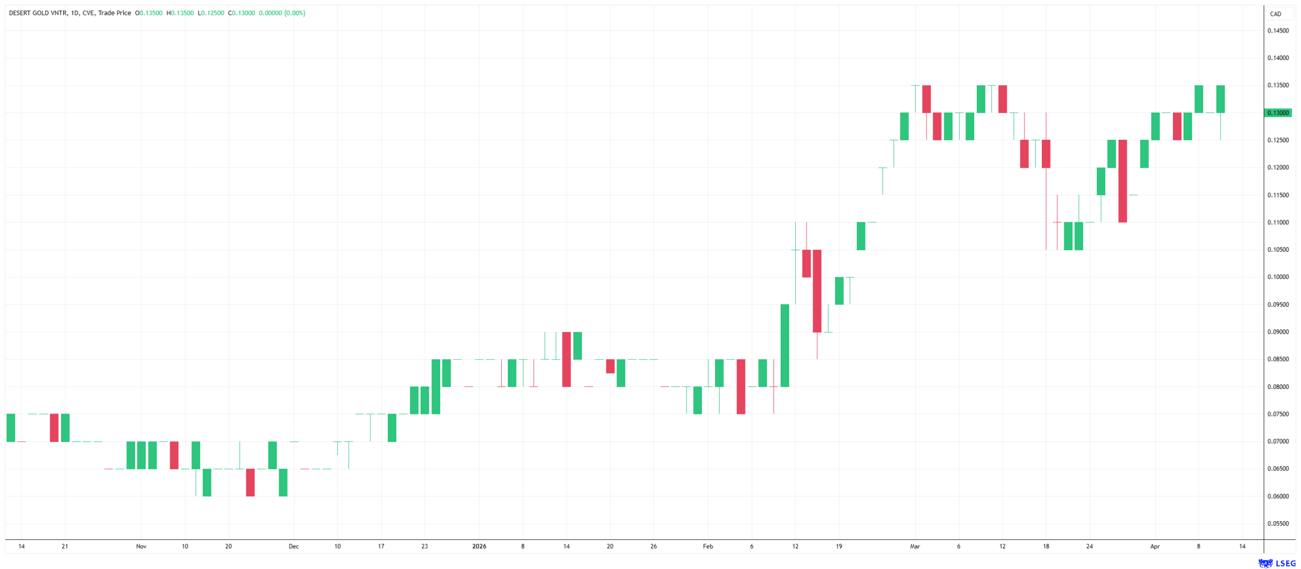 An updated economic feasibility study confirms that the project already has a net present value of USD 61 million at a base gold price of USD 2,850, which rises to a remarkable USD 124 million at the current spot price of over USD 4,000. Analysts at GBC Research recognize this potential and rate the stock with a clear "Buy" recommendation with a fair value of CAD 0.69. The stock is currently trading well below that at just around CAD 0.13. In an environment where industry heavyweights urgently need to replenish their reserves in the region, Desert Gold is positioning itself as either an ideal takeover candidate or a highly profitable producer—once the company successfully begins production, Desert Gold will attract further attention. Speculative investors can position themselves in advance. The market environment for gold from Mali has been brightening for months. Investors can take advantage of this.