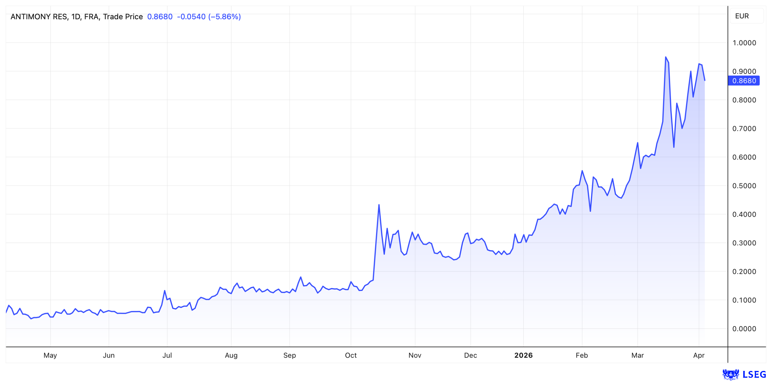 With a price target of CAD 3.00 (EUR 1.90), analysts at GBC Research attribute an upside potential of over 100% to Antimony Resources' stock. The share, which is also actively traded in Germany, is currently trading just above EUR 0.90. There are good reasons for this pronounced optimism.