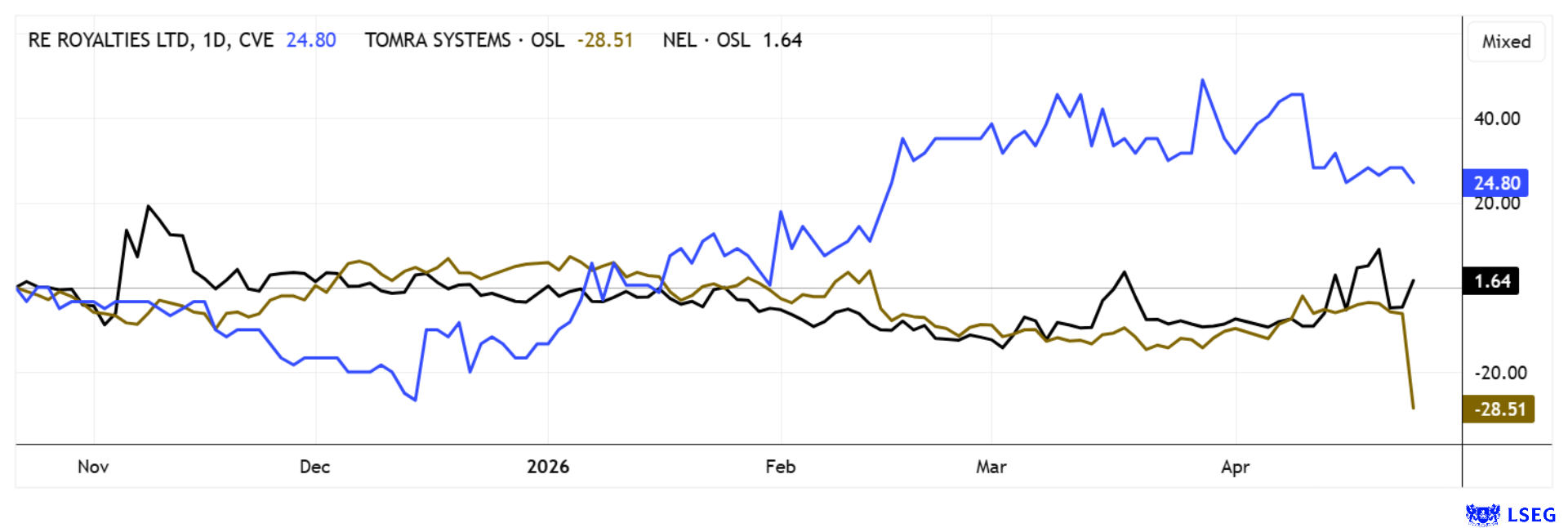 RE ROYALTIES LTD | CA75527Q1081 | TSXV: RE , OTCQX: RROYF , NEL ASA NK-_20 | NO0010081235 , TOMRA SYSTEMS ASA NK 1 | NO0005668905