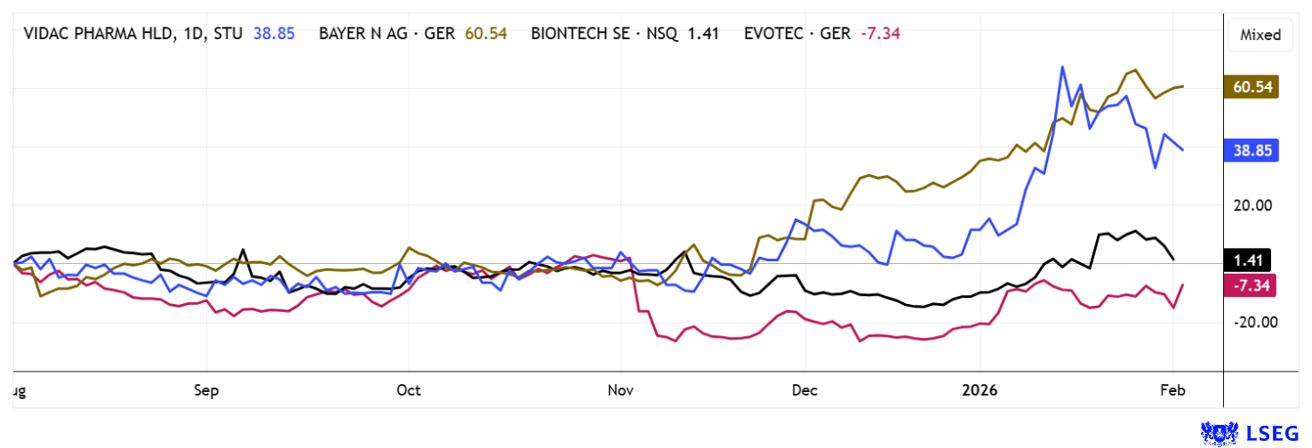 EVOTEC SE INH O.N. | DE0005664809 , BAYER AG NA O.N. | DE000BAY0017 , VIDAC PHARMA HOLDING PLC | GB00BM9XQ619 , BIONTECH SE SPON. ADRS 1 | US09075V1026