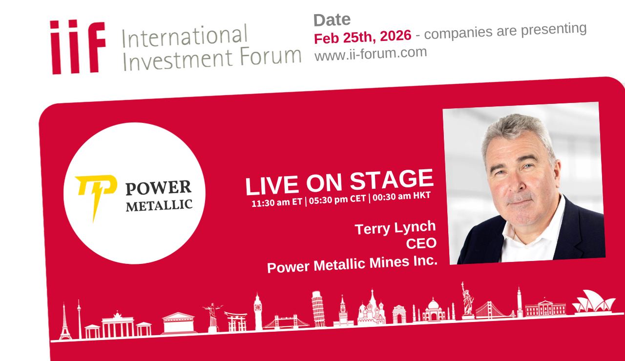 Those who would like to learn more about the prospects of Power Metallic Mines firsthand should register for the International Investment Forum (ii-forum.com) on February 25, 2026. CEO Terry Lynch will be presenting live.