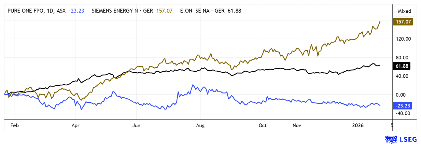 SIEMENS ENERGY AG NA O.N. | DE000ENER6Y0 , PURE ONE CORPORATION LIMITED | AU0000442865 , E.ON SE NA O.N. | DE000ENAG999