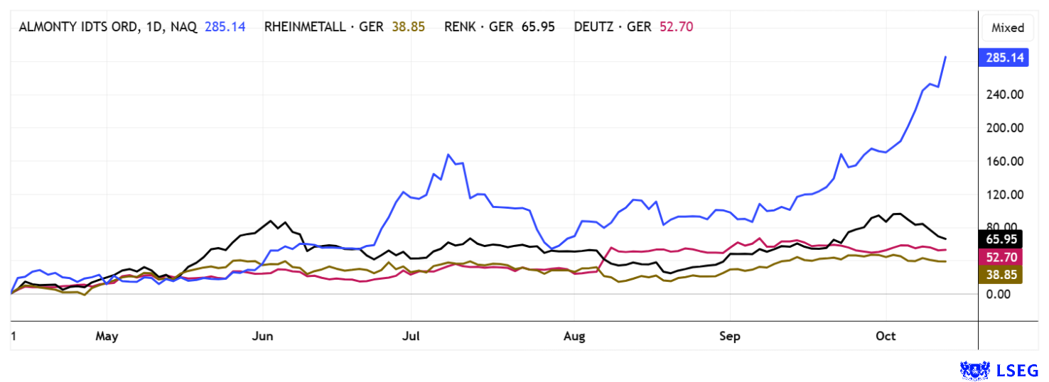 ALMONTY INDUSTRIES INC. | CA0203987072 , RHEINMETALL AG | DE0007030009 , DEUTZ AG O.N. | DE0006305006 , RENK AG O.N. | DE000RENK730