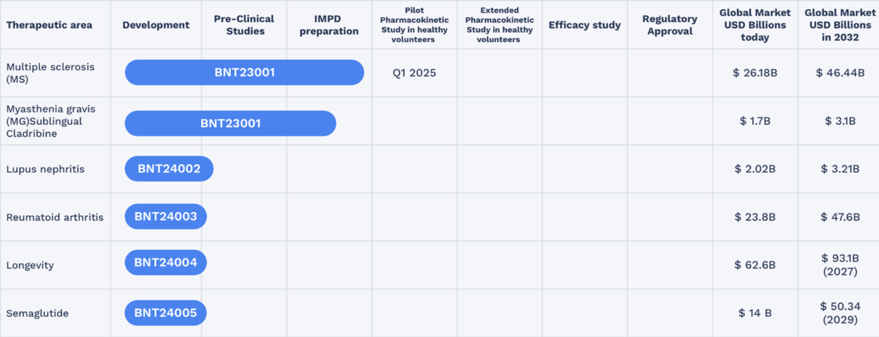 The Ozempic project is not the only one with which BioNxt is targeting a billion-dollar market. The Company is working intensively on its flagship project BNT23001, an orally dissolvable film formulation of the drug cladribine for the treatment of multiple sclerosis. This dosage form is designed to reduce the typical side effects associated with tablets or injectable MS drugs. For patients, this means greater comfort and less burden—factors that can be crucial in the long-term treatment of chronic diseases. BioNxt has already secured key patents for BNT23001, covering not only the transdermal delivery technology but also the specific formulation. In the US, BioNxt has filed its patent application for BNT23001 under the accelerated "Track One" procedure. Success would have a very positive impact on clinical development and subsequent commercialization. This means that the project is well secured both scientifically and commercially. Given a global MS market of over USD 25 billion, this opens up an opportunity for BioNxt to occupy a niche that is both medically urgent and economically highly attractive.
