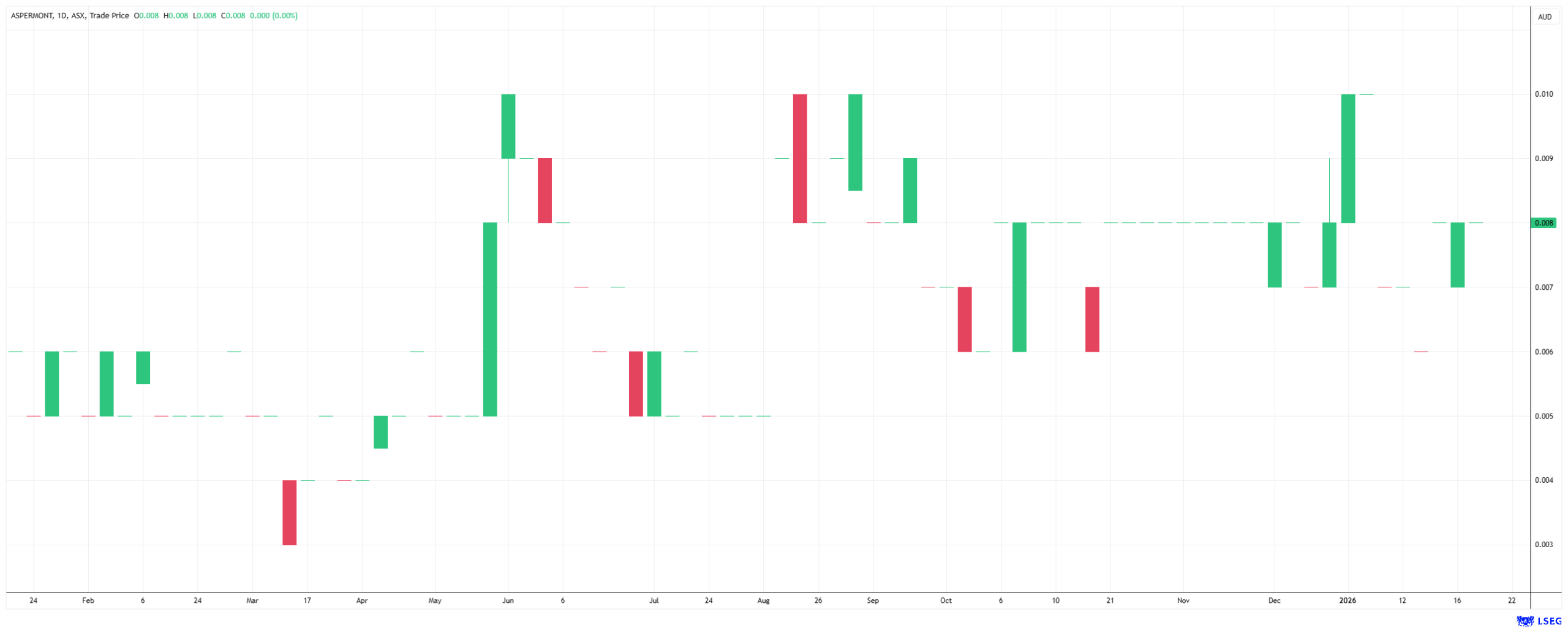 Aspermont's share price rose after the announcement of its collaboration with Rio Tinto in the field of AI last August and has since been trending sideways with a positive bias. The big push has not yet materialized. However, this may also be because, like many Australian stocks, Aspermont is purely a penny stock in visual terms. If the Company decides to consolidate its number of shares, this is likely to automatically attract more attention to the stock. Operationally, Aspermont has long been on the right track. Now that it has managed to convince Rio Tinto, a heavyweight in the industry, the remaining operational risks appear to be significantly lower. The stock remains a hidden gem.