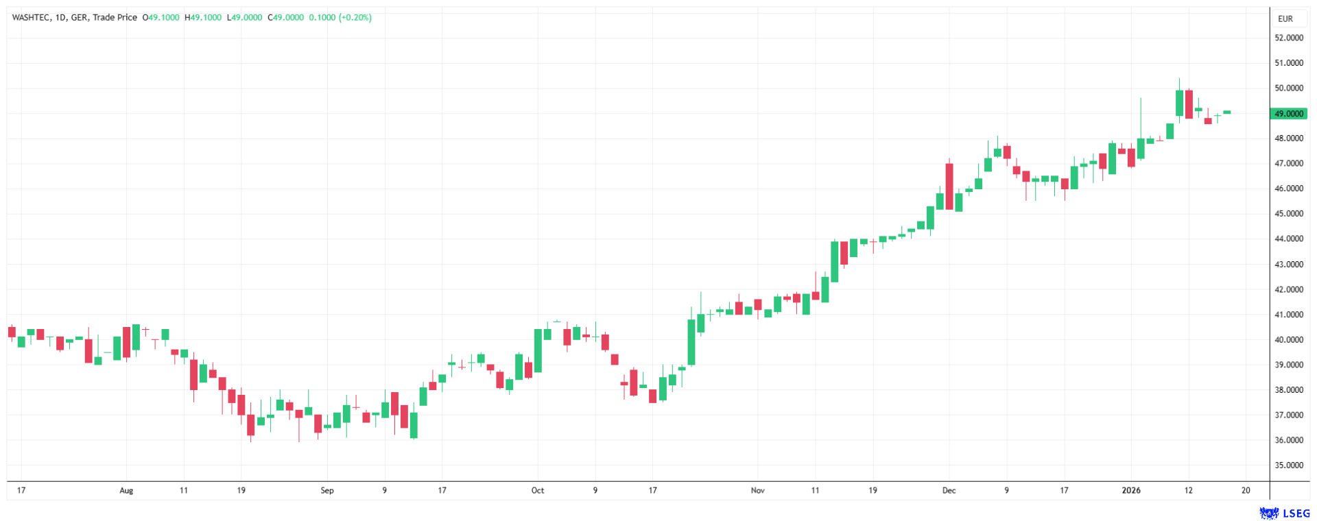 The stock has performed strongly over the past six months and could gradually set its sights on the highs reached in 2018 and 2021. At a time when AI-driven growth stories are being valued ambitiously, WashTec offers a solid industrial business with meaningful digital upside. Added to this is a dividend yield of nearly 5%. WashTec shares could emerge as one of Germany's export success stories in 2026.
