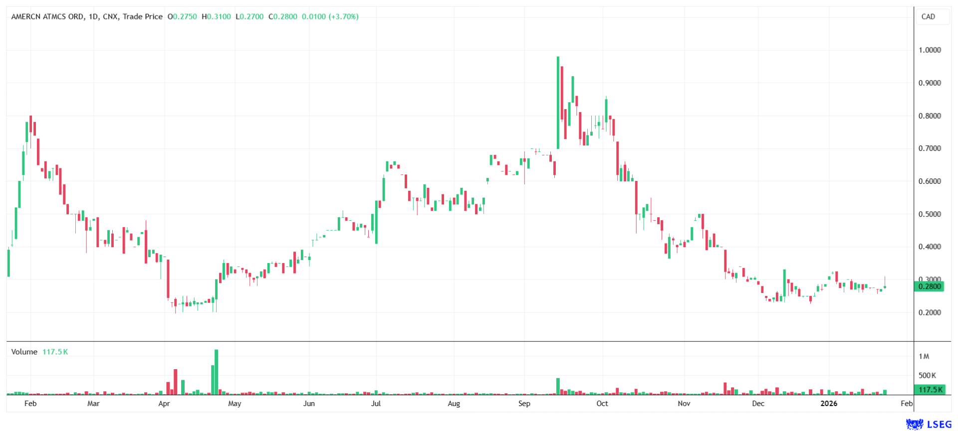 The stock is currently trading at CAD 0.28.