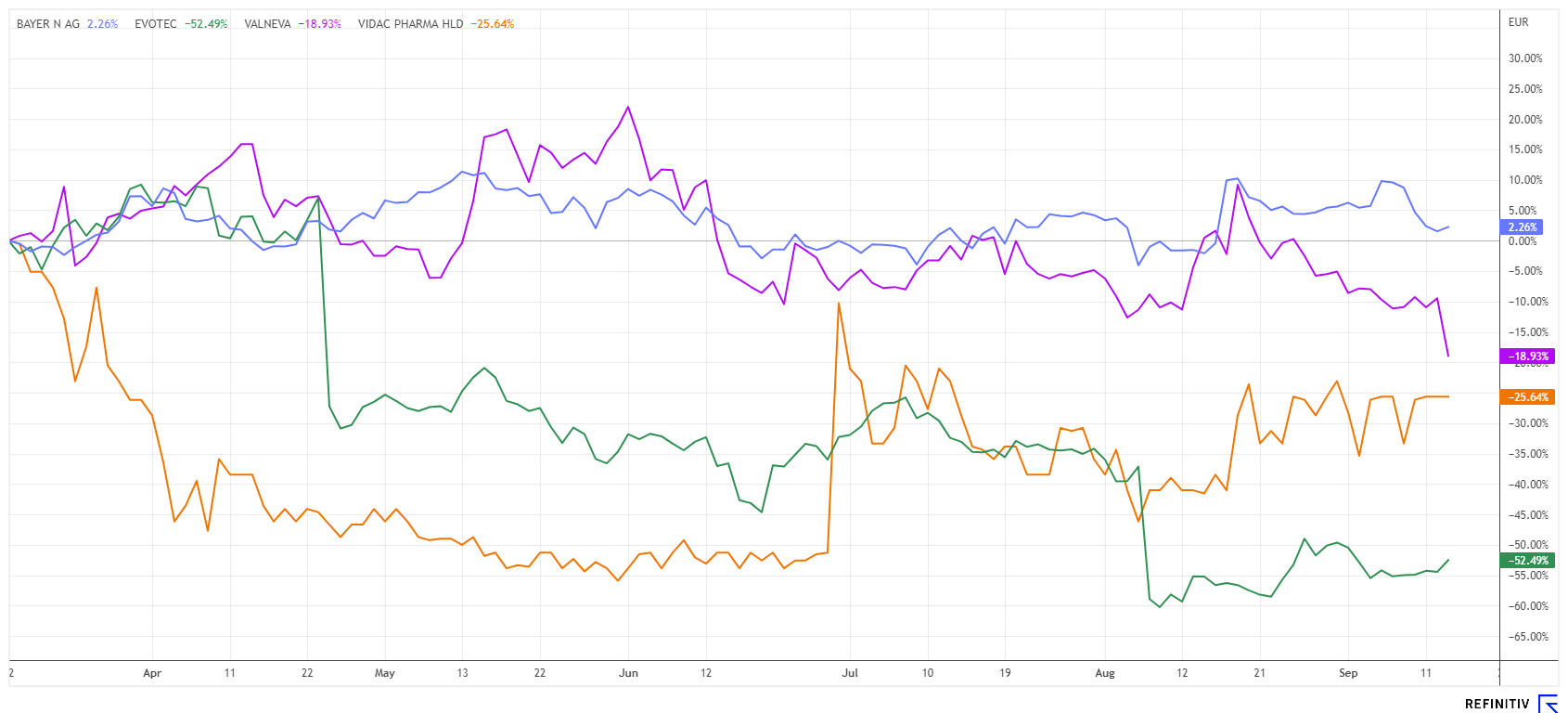 BAYER AG NA O.N. | DE000BAY0017 , VIDAC PHARMA HOLDING PLC | GB00BM9XQ619 , EVOTEC SE INH O.N. | DE0005664809 , VALNEVA SE EO -_15 | FR0004056851