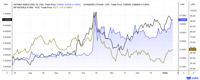 ANTIMONY RESOURCES CORP | CA0369271014 , MP MATERIALS CORP | US5533681012 , STANDARD LITHIUM LTD | CA8536061010