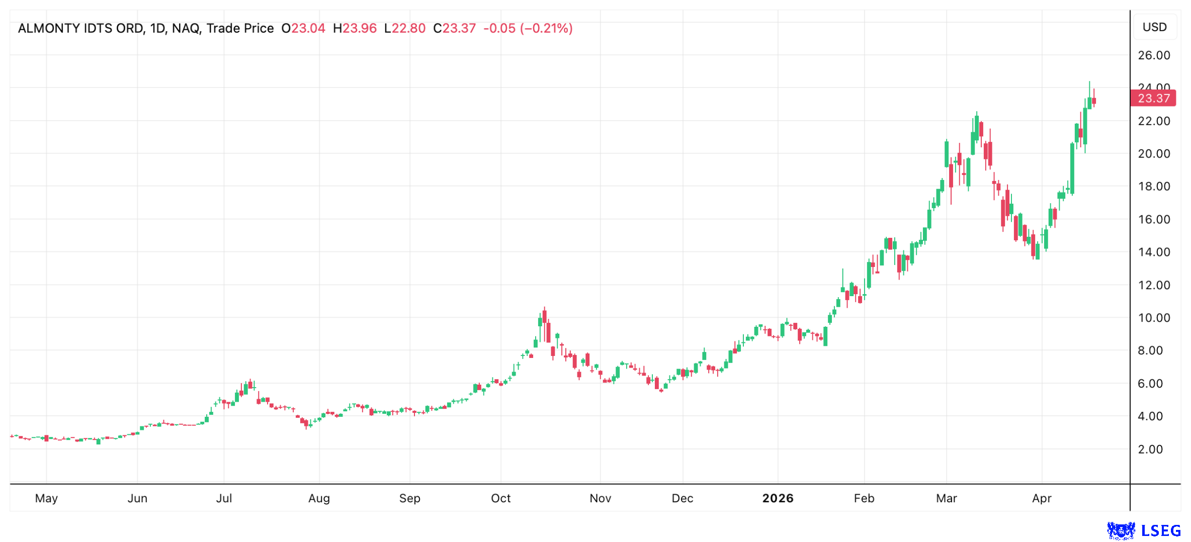 Almonty shares, which are also heavily traded in Germany, are currently trading at CAD 31.90.
