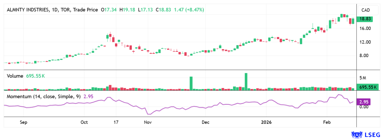 Combining all production sites in Europe, Asia, and the US creates a geographically diversified supplier in precisely those regions where security of supply is a political priority. The combination of speed, location quality, and political relevance is rare in the raw materials sector and has so far only been partially priced in by the market. However, with more than 1 million shares traded daily, Almonty shares show where the action is.