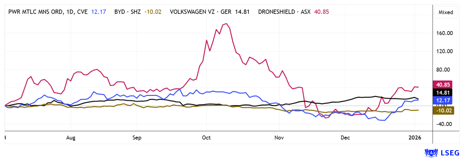 Up and down: Doublers and halvers among themselves! BYD, VW, DroneShield, and Power Metallic