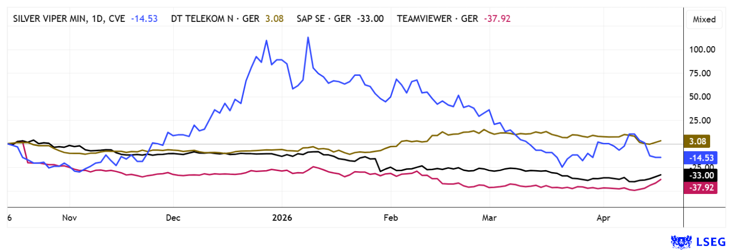 The stock market writes its own rules. While high-tech stocks regained lost ground last week, oil stocks went into a tailspin. This rotation reveals a pattern: easing market conditions boost growth stocks and put pressure on value stocks. Silver Viper has recently consolidated somewhat after a powerful rally, while Deutsche Telekom paid out its 3.8% dividend to investors. SAP and TeamViewer posted solid gains after a very long dry spell.